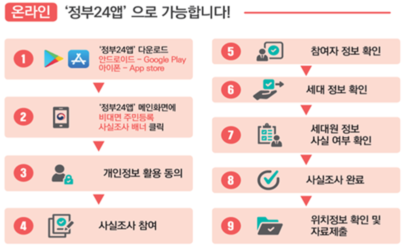 ① 비대면 사실조사: 2025. 7. 21.(월) ~ 8. 31.(일) ★모든 세대 대상, 정부24 앱